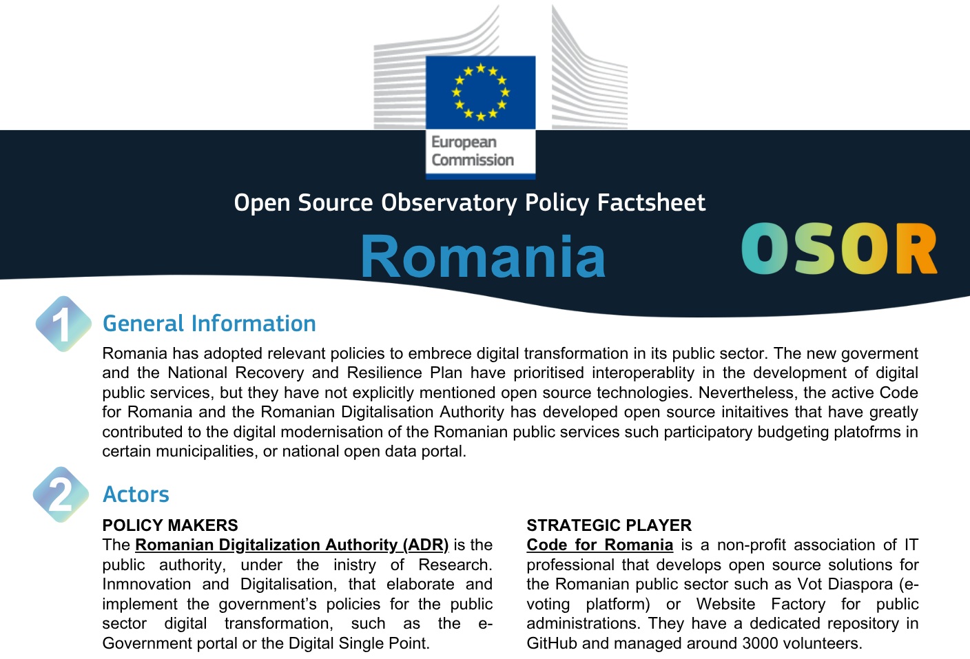 Code for Romania a fost menționat în prima pagină a raportului Open Source Observatory (OSOR) de anul acesta – „România country report update”.