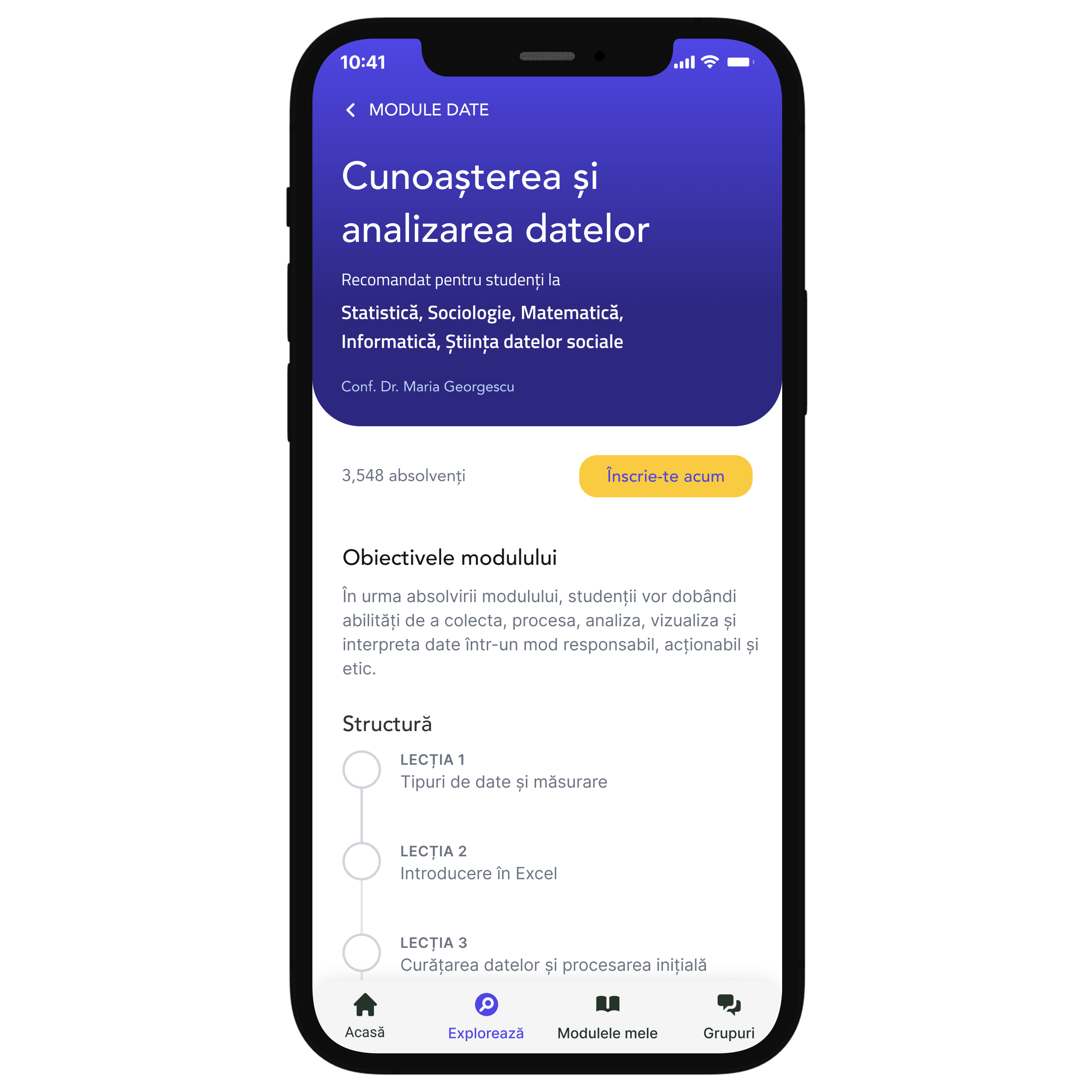 Utilizatorul va putea urmări progresul efectuat, timpul petrecut în platformă, cât și aptitudinile dobândite. În funcție de nivelul de satisfacție, utilizatorul va putea și evalua tutorialele urmate.