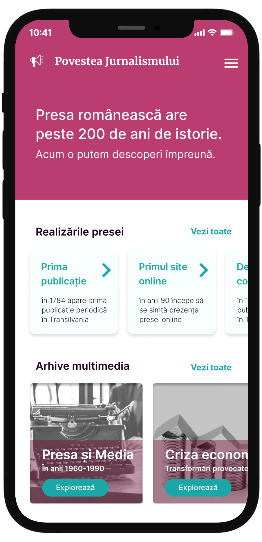 Pentru a parcurge istoria lungă a presei românești, soluția va oferi o serie de arhive multimedia, alcătuite din materiale scrise, audio și video, ce povestesc această istorie într-un mod atractiv și inovativ. Istoria va fi completată cu un modul separat dedicat realizărilor presei, în care vor fi puse în prim-plan momentele de referință ale presei și contribuțiile majore pe care jurnaliștii, redacțiile sau organizațiile media le-au avut de-a lungul timpului.
