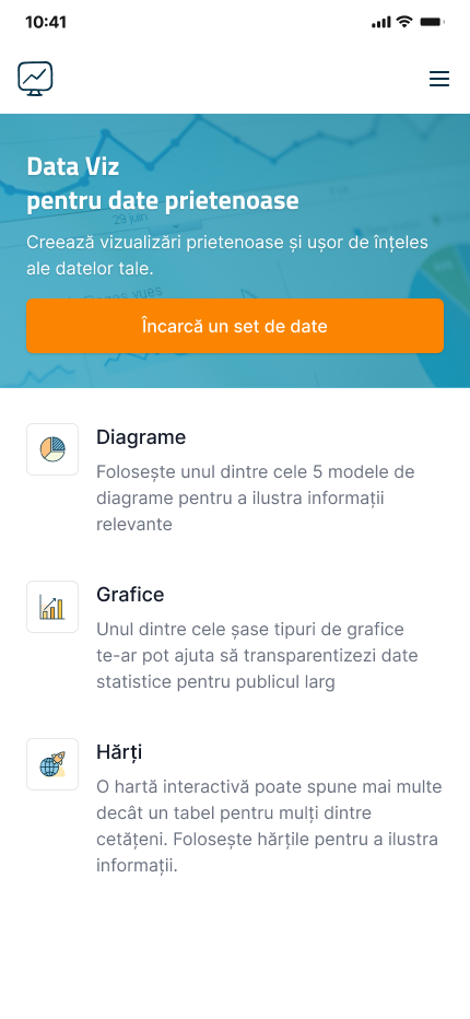 Data Viz este un instrument prin care instituțiile publice pot comunica date esențiale către public prin crearea de vizualizări intuitive și ușor de înțeles: diferite tipuri de grafice, diagrame sau hărți. Persoanele care le creează nu trebuie să aibe cunoștințe de programare sau de design grafic.