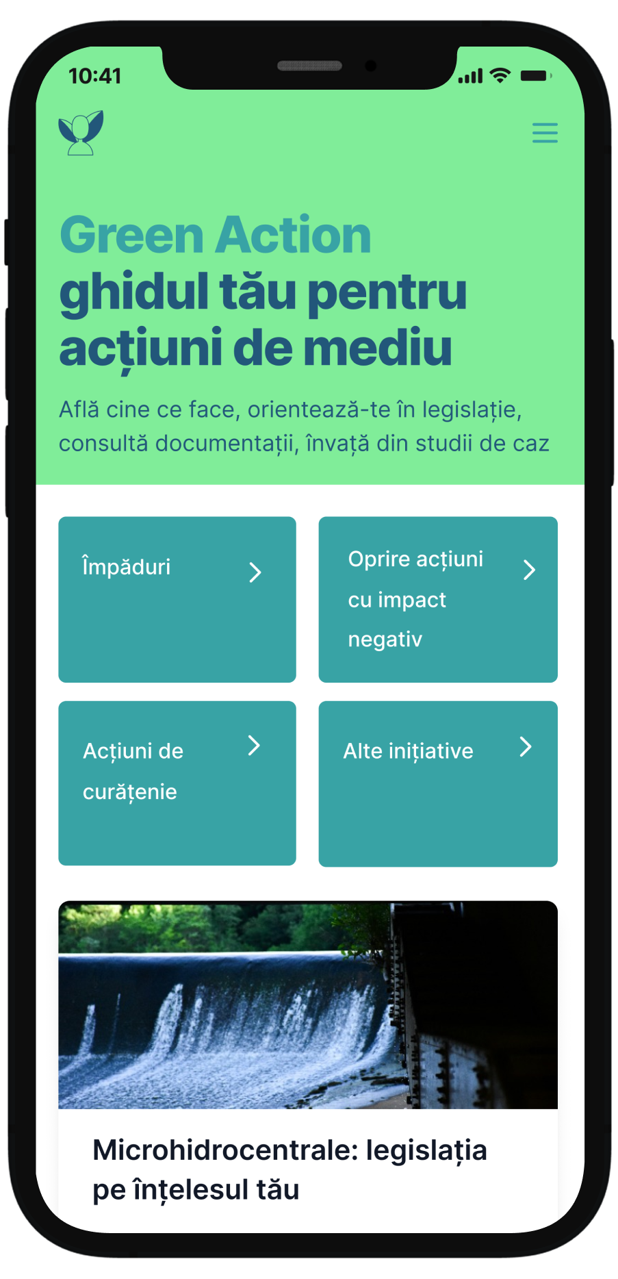 Green Action își propune să fie o platformă web menită să îi orienteze pe cei cu inițiative în protecția mediului în pașii ce trebuie urmați pentru a derula un anumit tip de proiect sau o acțiune (de exemplu acțiuni de împădurire, de strângere a deșeurilor, de prevenire sau oprire a acțiunilor cu impact negativ, etc). Platforma este dedicată grupurilor de inițiativă, ONG-urilor din domeniul protecției mediului, a biodiversității și dezvoltării durabile, celor care au un interes în arii protejate, dar și publicului larg care dorește să se implice în protecția mediului folosindu-se de pârghiile legale și de cele mai bune practici.