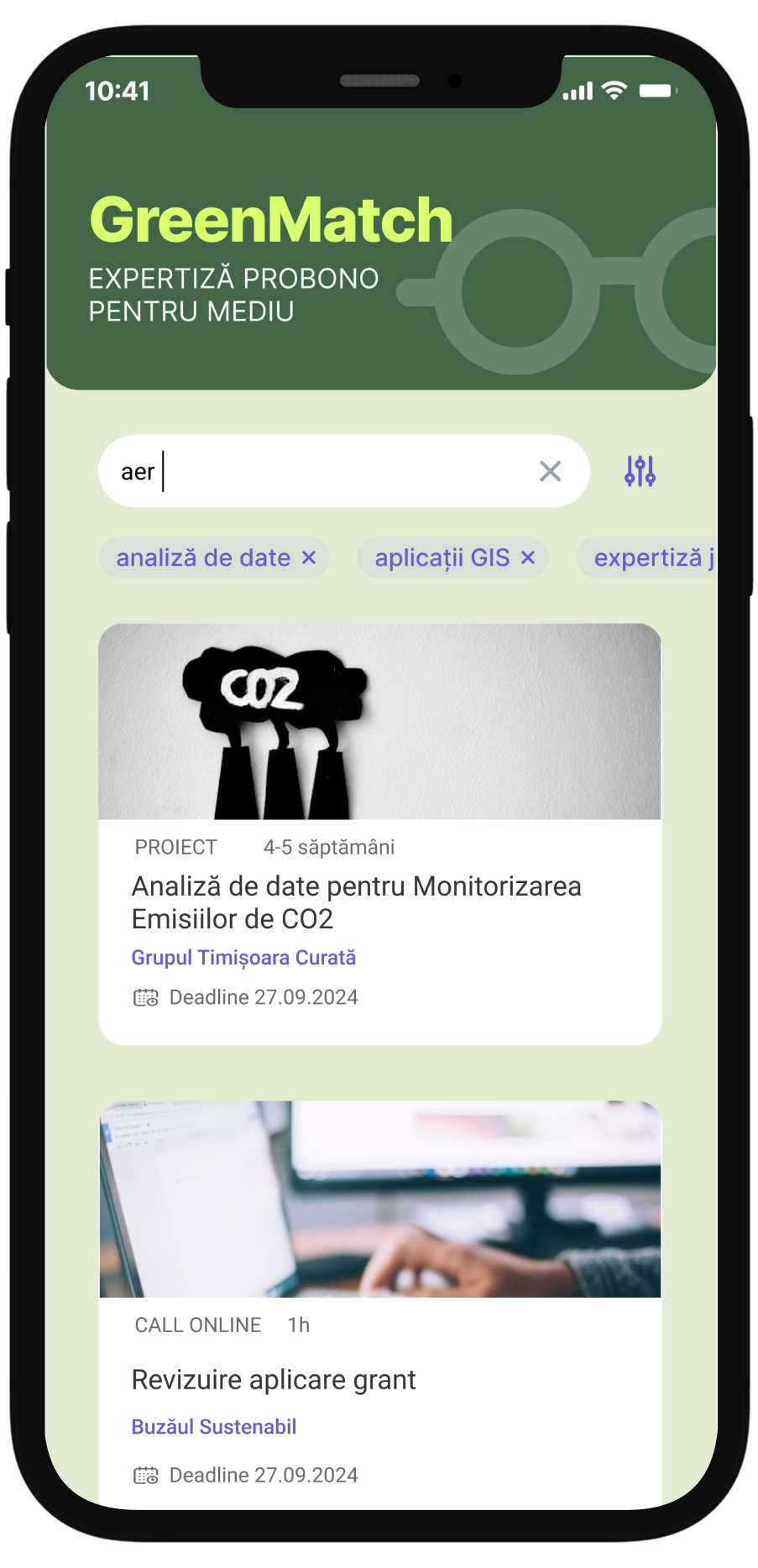 Platforma ar putea oferi un sistem de matching prin care cererile de expertiză din partea ONG-urilor sunt corelate cu oferta de voluntariat a profesioniștilor. De asemenea, ar include o funcționalitate de filtrare în funcție de domenii specifice de expertiză (energie regenerabilă, gestionarea deșeurilor, sustenabilitate urbană), precum și opțiuni pentru implicare pe termen scurt (proiecte punctuale) sau lung (colaborări extinse).