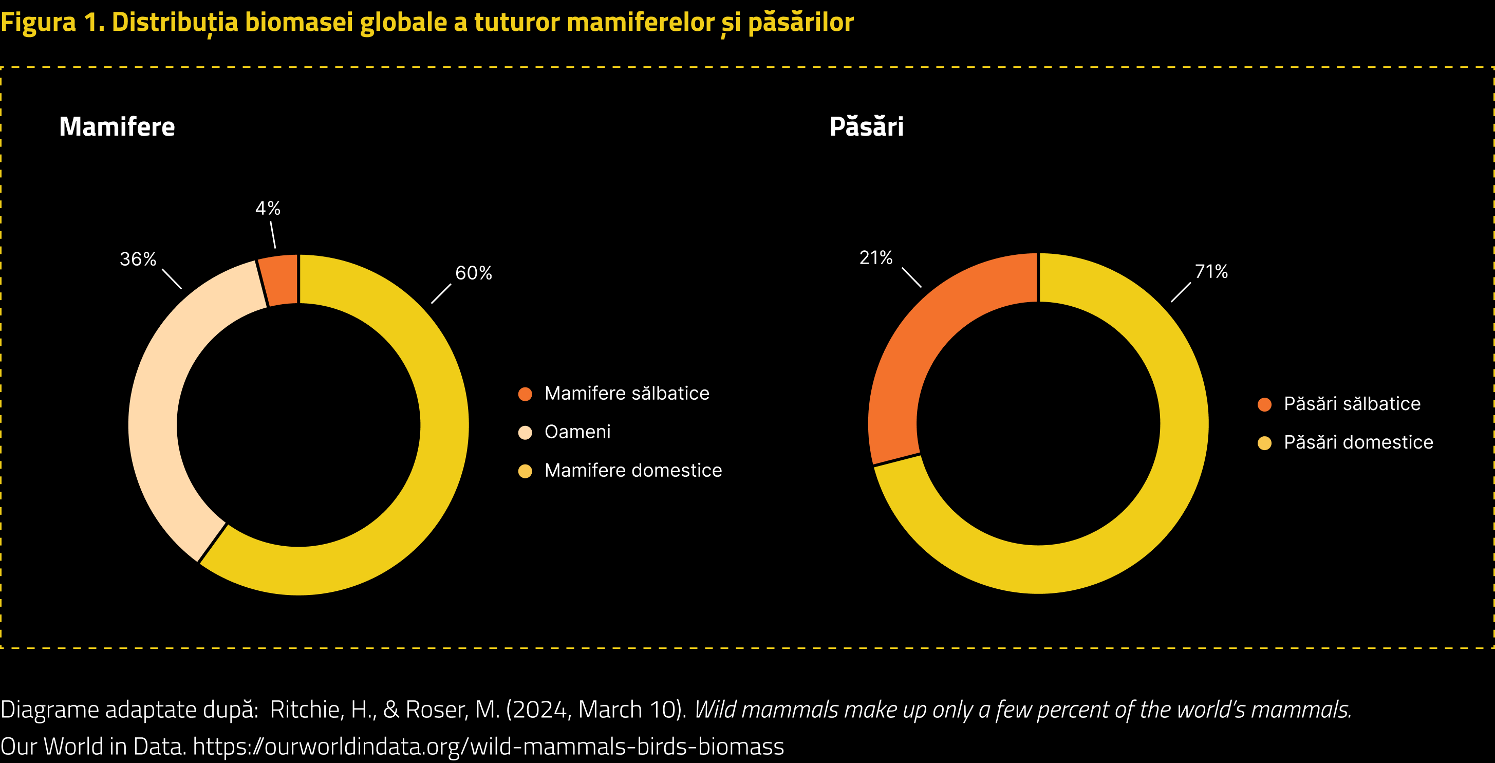În prezent, cultivarea plantelor și creșterea animalelor ocupă aproximativ 50% din terenul locuibil al lumii (Ritchie & Roser, 2019). La baza acestei extinderi a terenurilor agricole a stat creșterea exponențială populației cât și o preferință tot mai mare pentru produse de origine animală. Din 1970, greutatea colectivă a mamiferelor sălbatice a scăzut cu 82% (Bar-On, Phillips and Milo, 2018 ). În locul animalelor sălbatice, un număr mic de specii de animale de fermă (în principal vaci și porci) domină acum biomasa globală. Aceste animale de fermă reprezintă 60% din toate speciile de mamifere ca masă, comparativ cu 4% pentru mamiferele sălbatice și 36% pentru oameni.