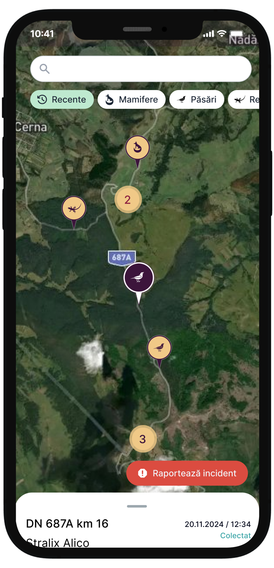 De asemenea, prin intermediul unei aplicații mobile asociate, cetățenii pot raporta de asemenea astfel de evenimente, primind și sprijin din partea specialiștilor pentru identificarea speciilor implicate în accidentele rutiere.