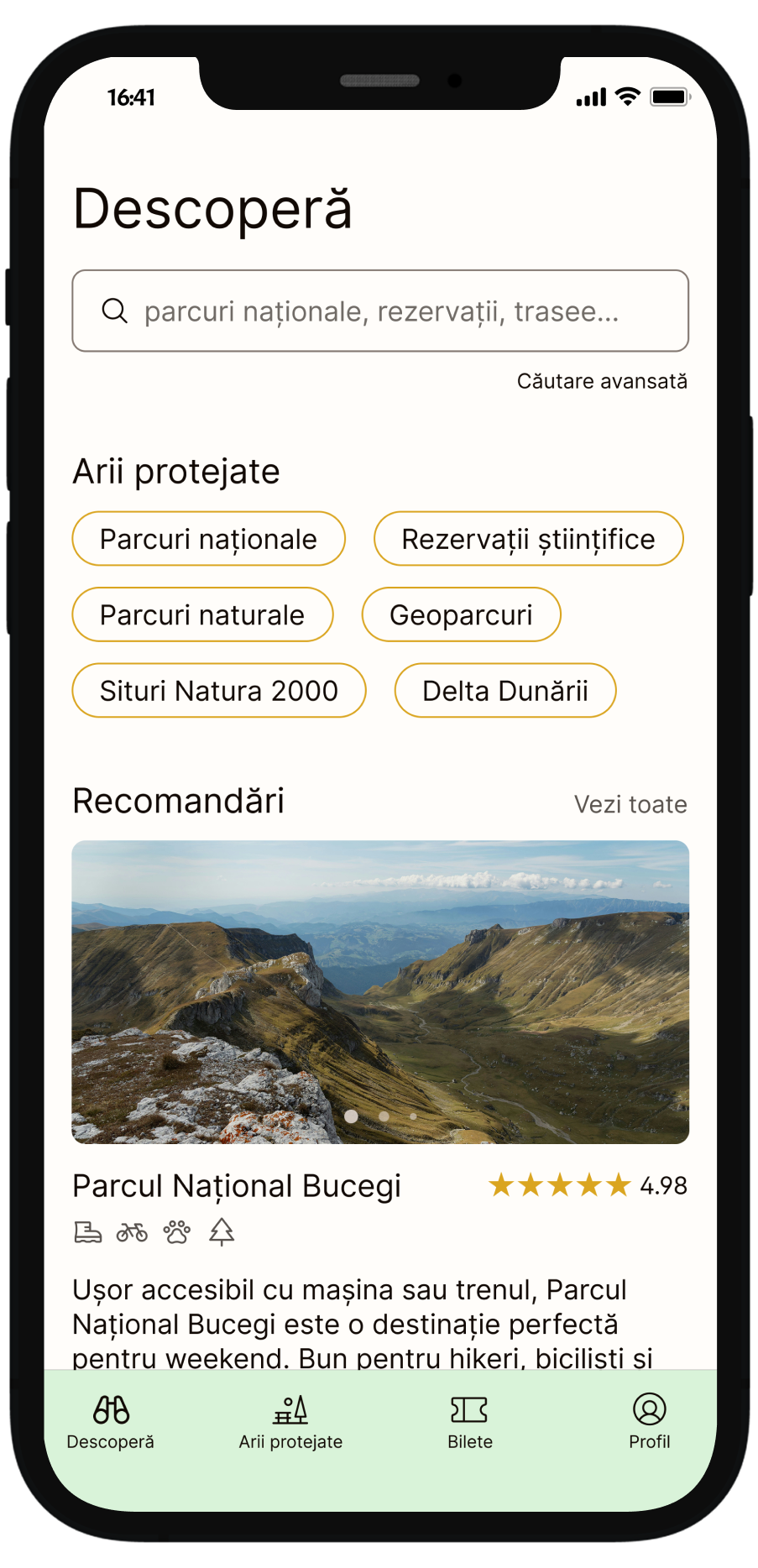 Simplificarea procesului de explorare a potențialului turistic din ariile protejate și planificare a excursiilor în aceste zone.