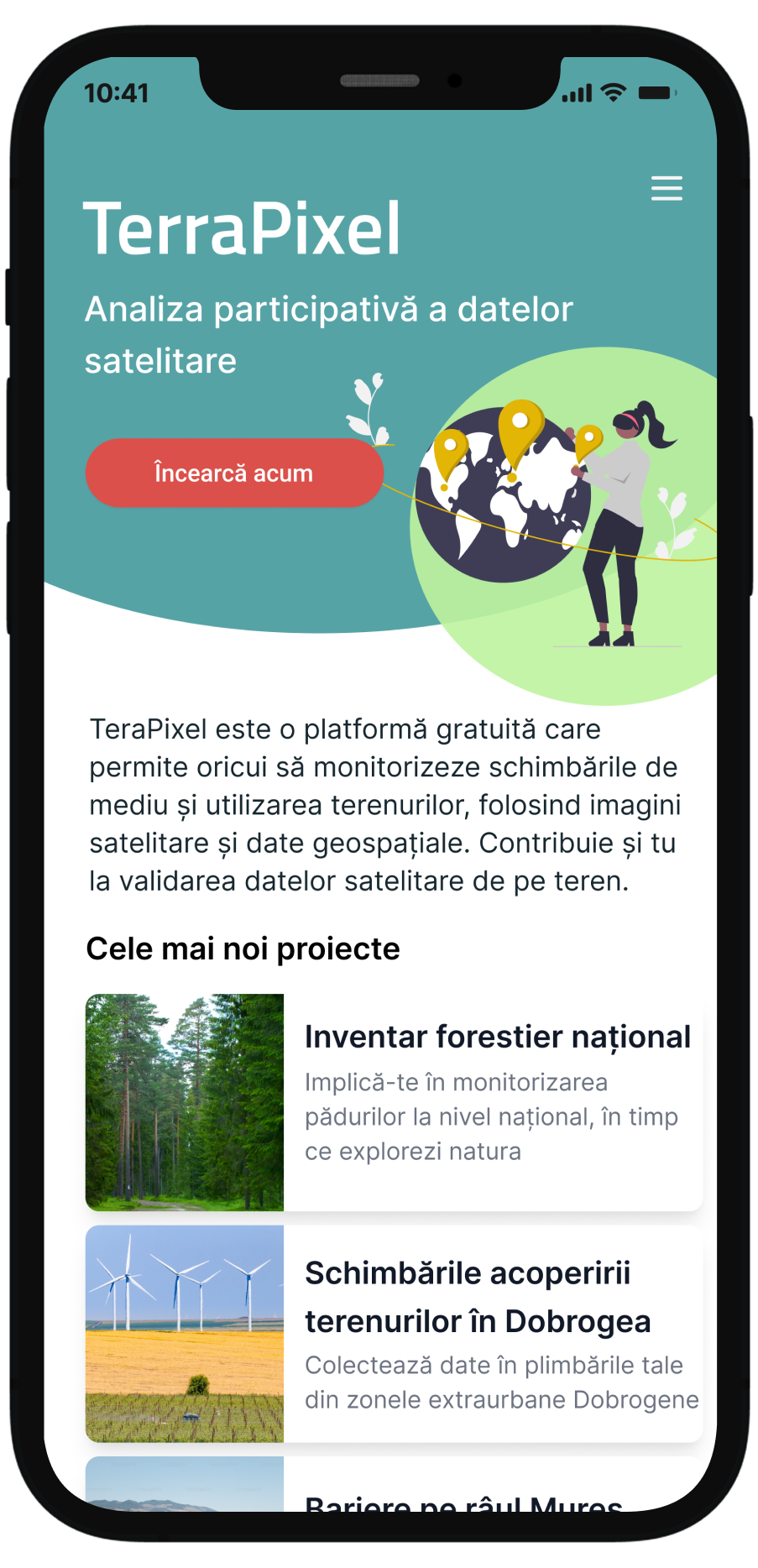 TerraPixel este o aplicație disponibilă în browser care facilitează analiza de date satelitare de înaltă rezoluție prin metode participative și colaborative. Organizațiile care au nevoie de analize de date satelitare pe suprafețe extinse pot crea proiecte și oricine poate contribui simultan la evaluările suprafețelor în scopuri ca identificarea schimbărilor în utilizarea terenurilor, monitorizarea defrișărilor sau a regenerării vegetației. Managerii de proiect pot crea și personaliza formularele folosite în evaluare.