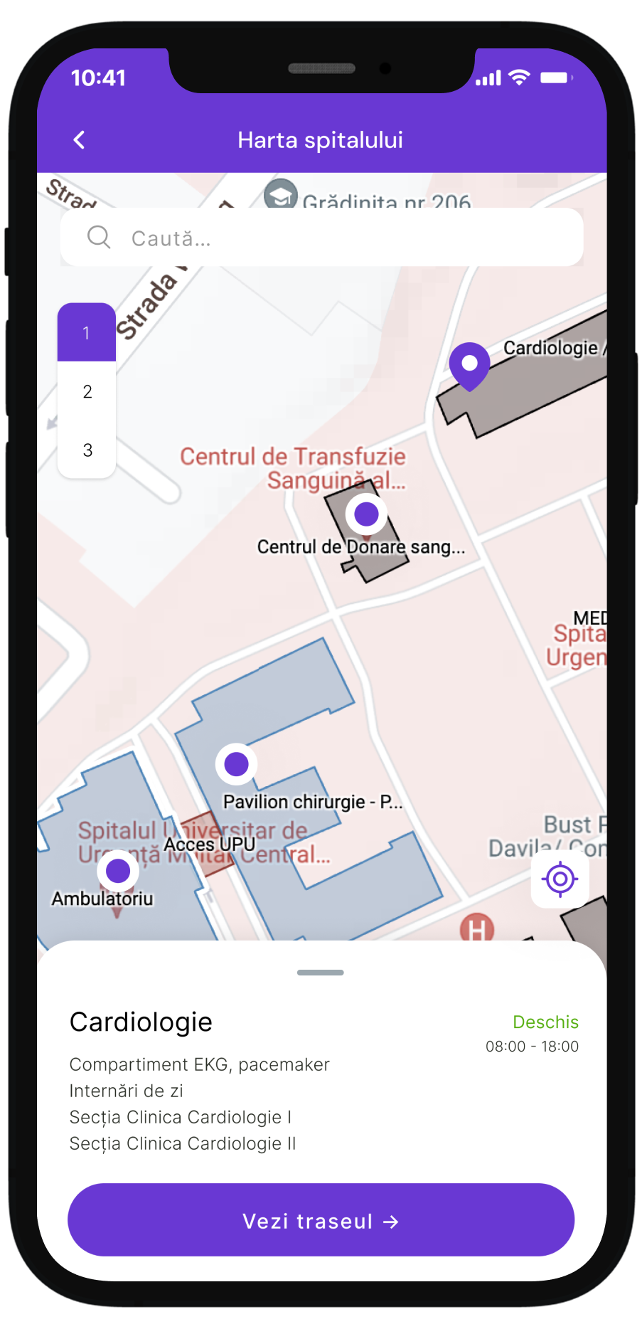 Soluția își propune să fie un sistem modular de destinat spitalelor, care facilitează crearea unui navigator spațial și informațional personalizat pentru pacienți și personalul medical. Soluția permite spitalelor să-și configureze în mod facil propriul navigator în funcție de nevoile și structura specifică a instituției. Componeta publică de navigare în spațiu presupune o hartă interactivă a spațiilor fizice care sprijină pacienții și personalul medical să se orienteze eficient în interiorul clădirilor. Utilizatorii pot vizualiza traseele optime către secțiile de interes (ex: sală de așteptare, departamente specializate, registratură, etc.), oferind indicații pas cu pas și localizare în timp real, precum și informații despre medici, secții, programe, documente necesare și alte informații de interes.