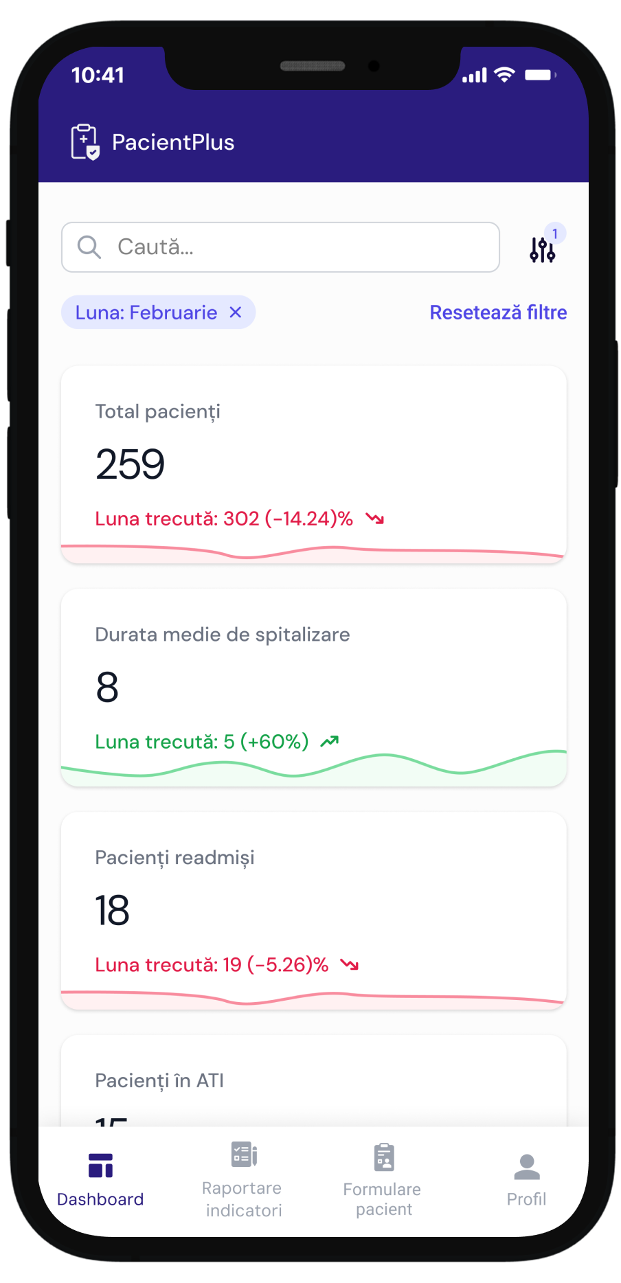 Optimizarea monitorizării performanței clinice prin raportarea automată și integrată a indicatorilor de rezultat și proces.